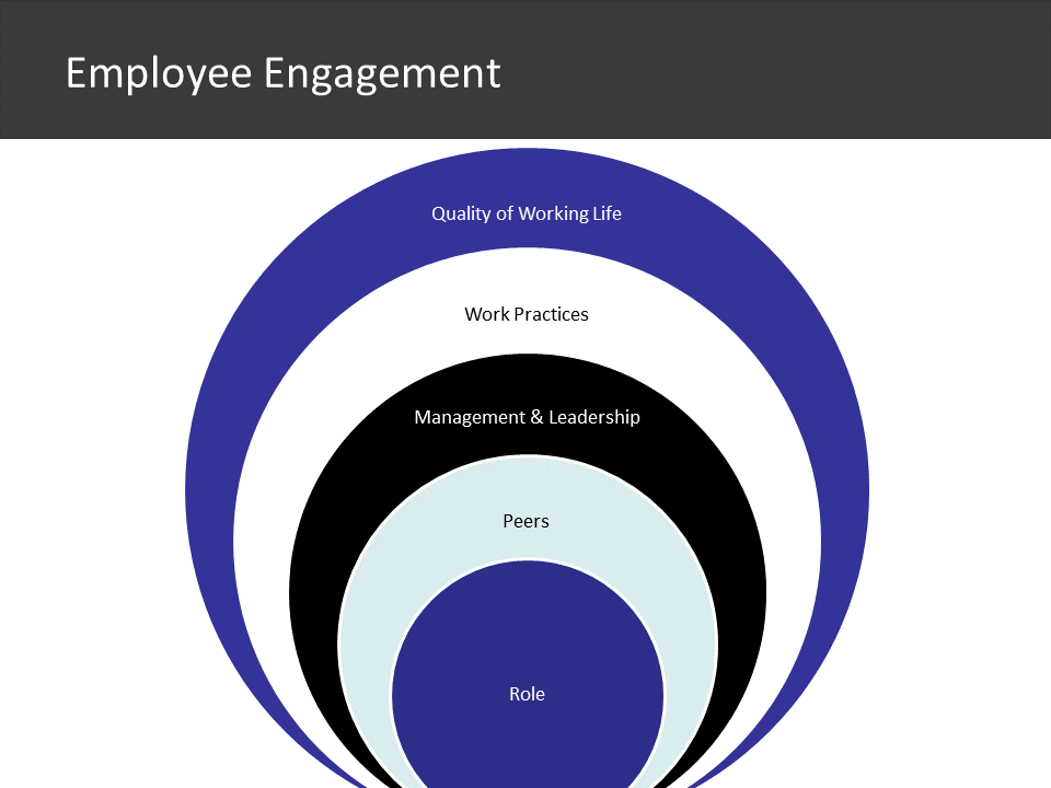 Our particular diagnostic is designed to gather specific insights related to employees' perceptions of their role, their relationships with peers, management and leadership, work practices and areas, and the quality of life within the organisation as shown here.
