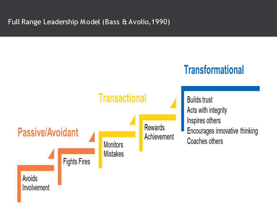 The MLQPlus utilises the Full Range Leadership Model (FRLM) shown here and offers a range of assessment options including 360s; 180s; Self; Team, and Enterprise assessments.